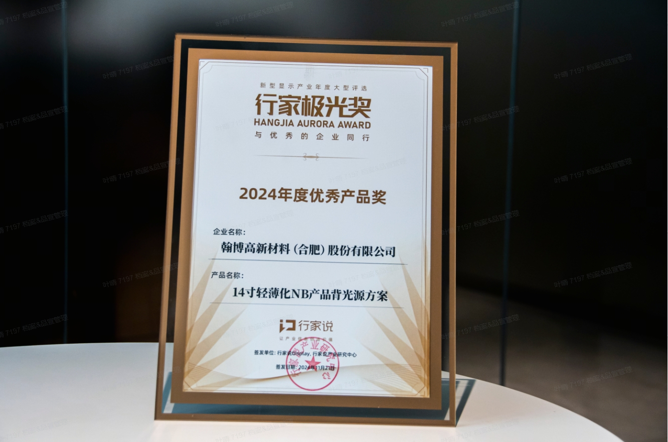 翰博高新材料(合肥)股份有限公司(股票代碼:301321.SZ)成立于2009年,是國內(nèi)領(lǐng)先集顯示設(shè)計、光學開發(fā)、智能制造、供應鏈整合于一身的光學整體解決方案一站式綜合提供商,公司的主要產(chǎn)品包含背光顯示模組、導光板、精密結(jié)構(gòu)件、光學材料、Mini-LED燈板等相關(guān)零部件,廣泛應用于筆記本電腦、平板電腦、車載顯示屏幕、桌面顯示器、醫(yī)療顯示器及工控顯示器等終端產(chǎn)品。