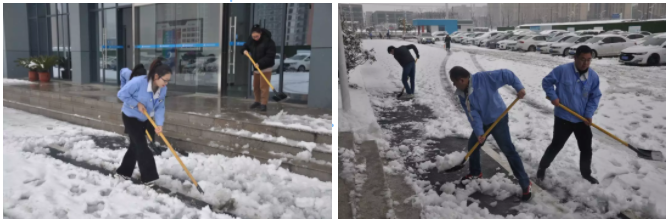 工具齊了,人齊了,大家在周健生總、鄂冠宇總的帶領(lǐng)下擼起袖子加油干。雪的寒冷抵擋不住翰博人的熱浪,廠區(qū)的主路清理干凈。在掃雪的過程中大家表現(xiàn)積極,充分的展現(xiàn)了翰博人的團(tuán)結(jié)和齊心協(xié)力。