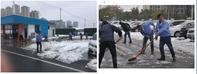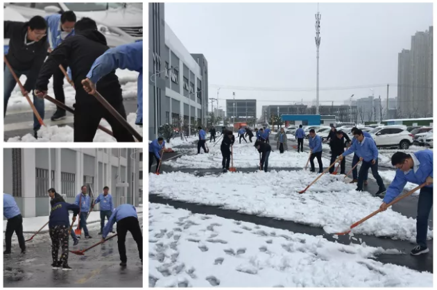 天亮了,上班路舉步維艱。大家?guī)缀跏腔械焦?,雪很美,但是也會給我?guī)碡?fù)擔(dān)。我們博訊廠區(qū)的廣場上鋪上了厚厚的積雪,給上班的同事們帶來了不便。行政人員第一時間組織人員進(jìn)行鏟雪,雖然當(dāng)時工具不齊全,但是輪番上陣也要融化這厚厚的雪。